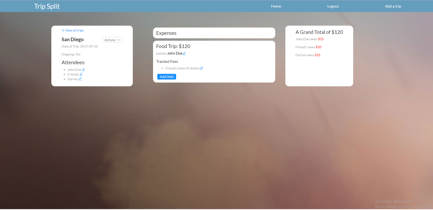 Project: Trip Split